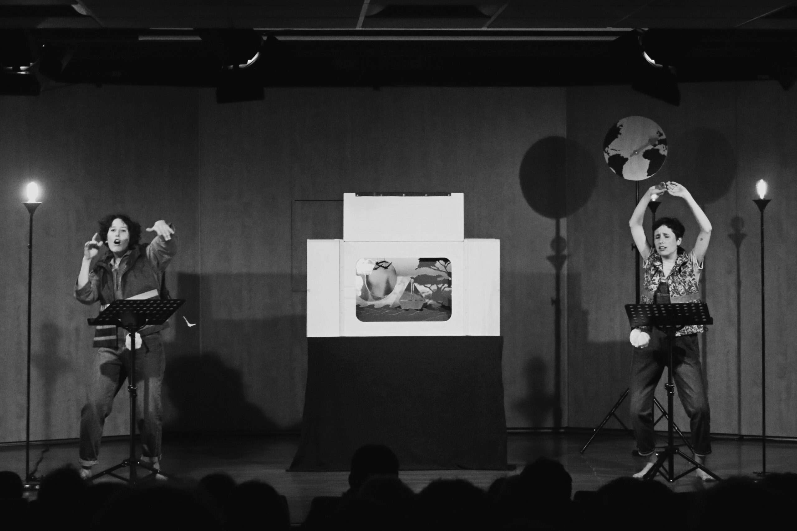 Joueuses de terrain, nous naviguons en terre frontalière, entre danse, chant, slam, théâtre physique et jonglage.