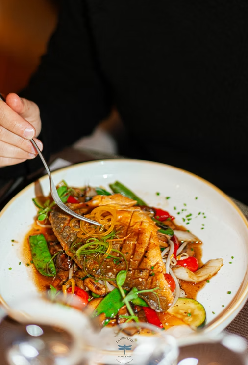 À La Libellule, chaque plat est conçu pour sublimer la richesse des produits marins, en harmonie avec les saisons. Notre restaurant allie fraîcheur et finesse, tant dans l’assiette que dans l’atmosphère. Une véritable parenthèse de douceur et de plaisir au bord du lac.