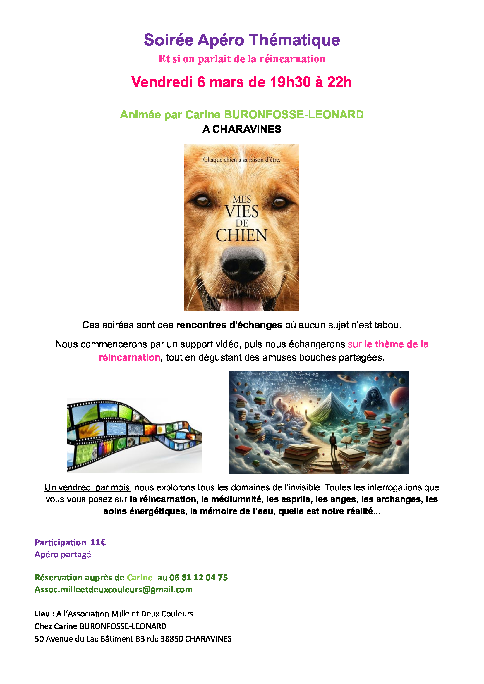 Nous commencerons par un support vidéo, puis nous échangerons sur le thème de la réincarnation, tout en dégustant des amuses bouches partagées.
